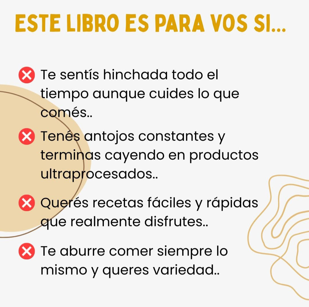 Porque este libro te ahorra tiempo, errores y frustraciones. En lugar de perderte entre recetas sueltas o poco claras, tenés todo en un solo lugar: organizado, probado, con resultados que funcionan desde el principio y pensados para ayudarte a comer mejor.
